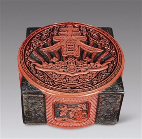 雕彩漆是在胎骨上分不同层次髹不同颜色的漆,然后逐层刻除不需要的颜色,使最终留下的图案呈现出绚烂的色彩。这种工艺从南宋便有萌芽,但色彩单调,最多仅采用三种颜色,发展至明代日趋成熟,色彩也逐渐丰富。这件清代彩漆深雕春字花卉盒漆色光亮,包浆浓郁,雕工圆润,下刀一气呵成,粗犷豪放中呈现出朴实美。