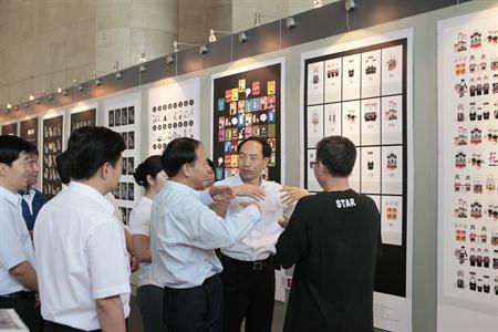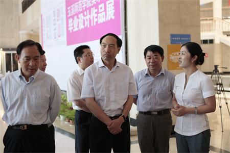 (图\文 王溢)6月19日上午,在玉溪市委副书记夏立洪、副市长杨洋、市教育局局长罗江云等领导陪同下,云南省委常委省政府党组成员高校工委委员书记李培一行到我馆参观考察了玉溪师范学院美术学院艺术设计系毕业设计作品展——《2013美术作品﹒2013创意花腰傣》。