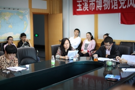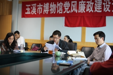 本网讯(图﹨文 王溢)9月9日上午,我馆召开全馆职工会议,由陈泰明馆长主持,传达了市文化局关于年轻干部培养、干部交流和推荐输送干部的内容和精神,并通报了我馆近期工作进程。近期将开展的工作有:“全国第一次可移动文物普查”我馆任务及培训事宜、外展安排事宜、玉溪师院和江川书法界书法联展、婚庆文化博览会、第三届古玩艺术品博览会、纪念鲁迅图片展、创意帽天山认识寒武纪展。