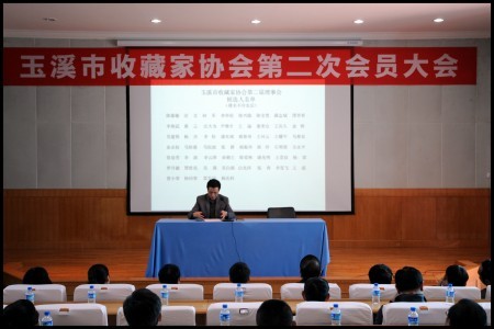 本网讯(图\文 吴建伟 杨霏 王溢)2013年11月3日下午,玉溪市收藏家协会第二届年会在玉溪市博物馆报告厅举行,会议由业永恒副会长主持。会议通过了协会新一轮换届选举结果,陈泰敏当选新一届收藏家协会会长,吴建伟当选秘书长。新会长陈泰敏对协会5年来的工作进行了总结,并通报了2013年玉溪市古玩艺术品博览会筹备情况,会后协会新领导班子与到会会员愉快合影。