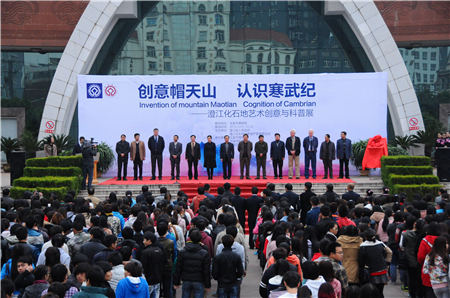 本网讯(图﹨王溢 文字编辑﹨张雪娇)2013年12月06日上午,“创意帽天山 认识寒武纪”澄江化石地艺术创意与科普展览在我馆开幕。牛津大学教授,云南大学、云南大学重点古生物实验室、云南省科技厅、云南省国土厅、云南省博物馆、玉溪市委、玉溪市人民政府、玉溪市政协、玉溪师范学院、澄江县等机构和单位的领导出席了展览开幕式。此次展览本着挖掘世界遗产深刻内涵,推动科研合作交流,展示艺术创作成果,助力文化创意产业的主旨。