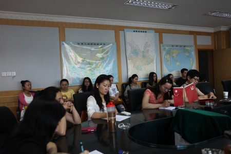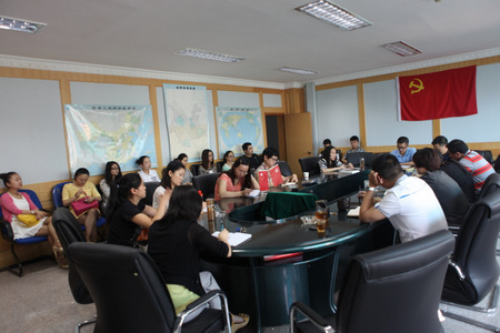 本网讯(图/王溢 文/张雪娇)2014年4月28日上午,我馆全体职工在陈泰敏馆长主持下召开全馆职工大会。陈泰敏馆长对我馆组织的对外文化交流重要活动《穿越古滇文明之光——玉溪文物精品展》在内蒙古的展出情况进行了总结,肯定了大家努力的成绩,同时向广大职工提出了新的要求,会上还通报了我馆职工职称情况及关于申报职称的相关事宜。
