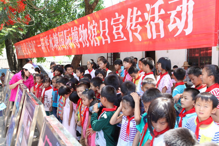 为促进县乡群众对玉溪本土区域历史文化以及聂耳爱国主义相关知识的了解,使县乡群众能够就近享受博物馆输送的精品文化服务,配合此次国际博物馆日系列活动,进一步加大博物馆及博物馆提供文化服务的宣传,扩大博物馆在县区的知晓率及县区群众对于博物馆提供文化服务的参与率, 5月19日—20日,我馆前往新平县举办”博物馆走进哀牢山——新平水塘国际博物馆日宣传活动”,分别在金厂村明存小学和水塘镇文化广场展出了《聂耳与国歌——爱国主义教育展》和《文物科普知识展》,通过展板让学生们和当地群众能了解历史、增长知识,培养学生了解家乡文物、热爱家乡的情怀,激发社会的爱国热情,200余名师生和300余名镇上群众观看了此次展览,我馆还根据观众需要,安排专职讲解员进行了现场讲解。